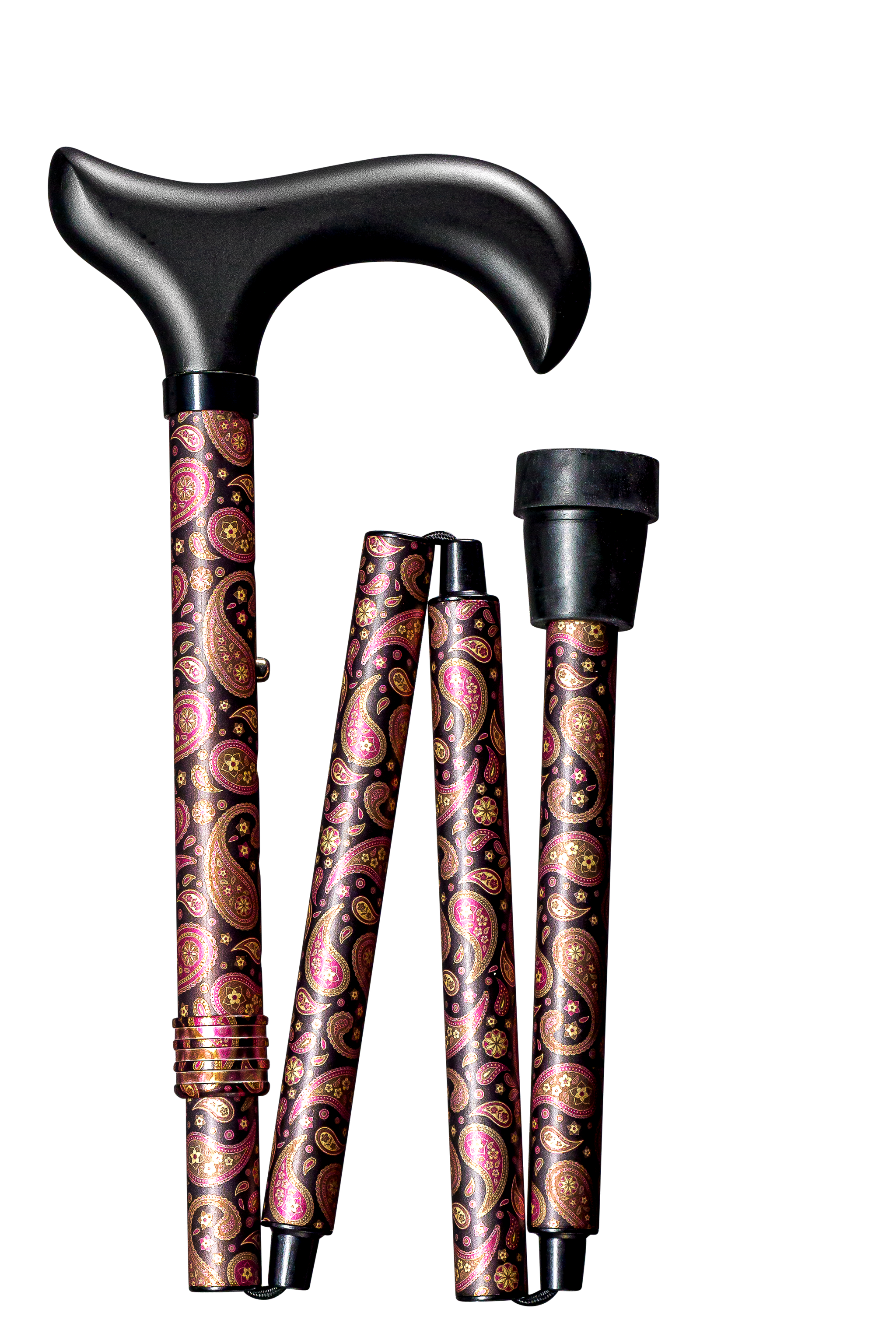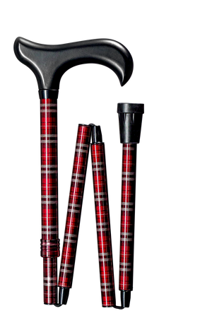 Bastone da passeggio pieghevole con comoda impugnatura in legno.